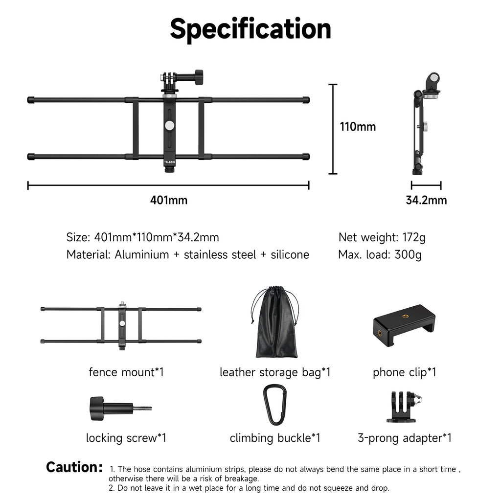 Rich accessories are suitable for various models, with a 1/4 standard adapter, and a three-claw adapter and a mobile phone holder are provided. It can be adapted to sports cameras, panoramic cameras, mobile phones, small card cameras and other equipment.
